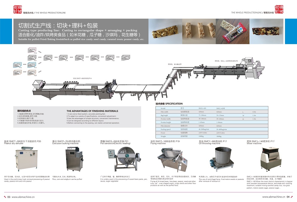 切块机+理料包装流水线(沙琪玛,花生糖,米花糖,沙琪玛的生产到包装全线自动)